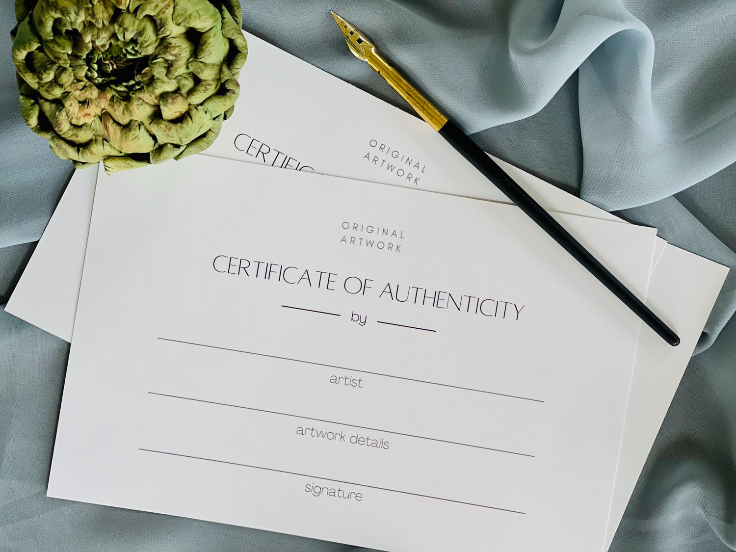 Each painting comes with a Certificate of Authenticity, detailing the artwork's origin, artist's signature, and specific information about the painting, ensuring you have a genuine and well-documented piece of art.